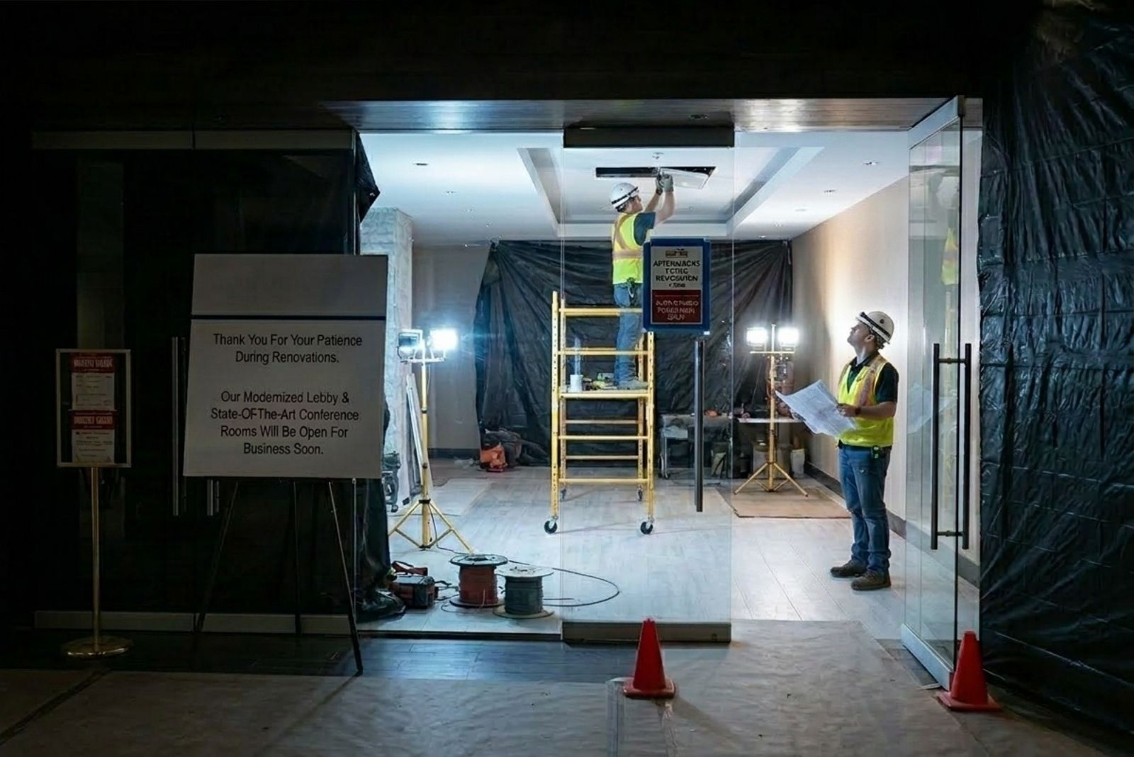 In occupied environments, the renovation has to work around the business, not the other way around.